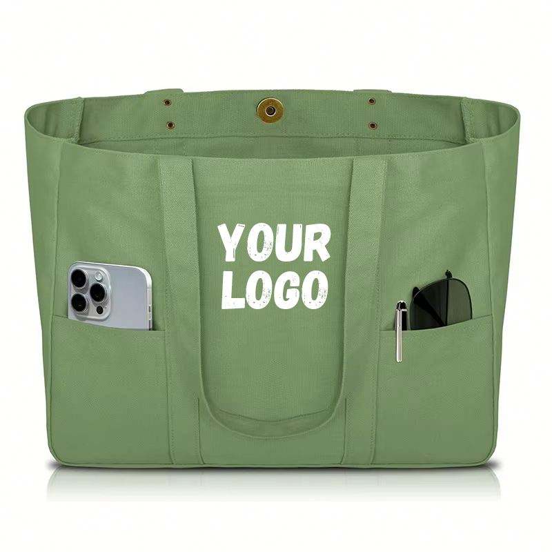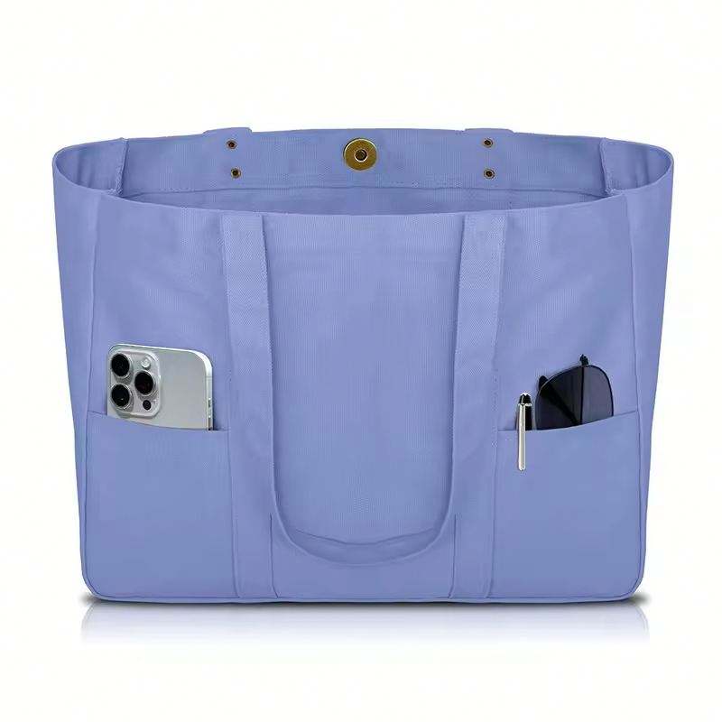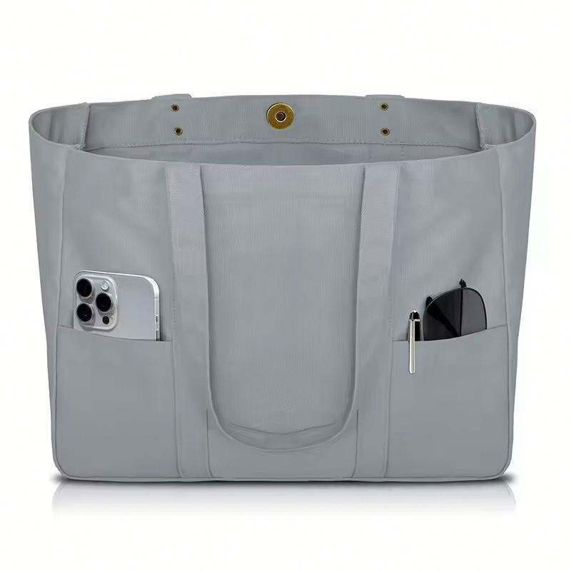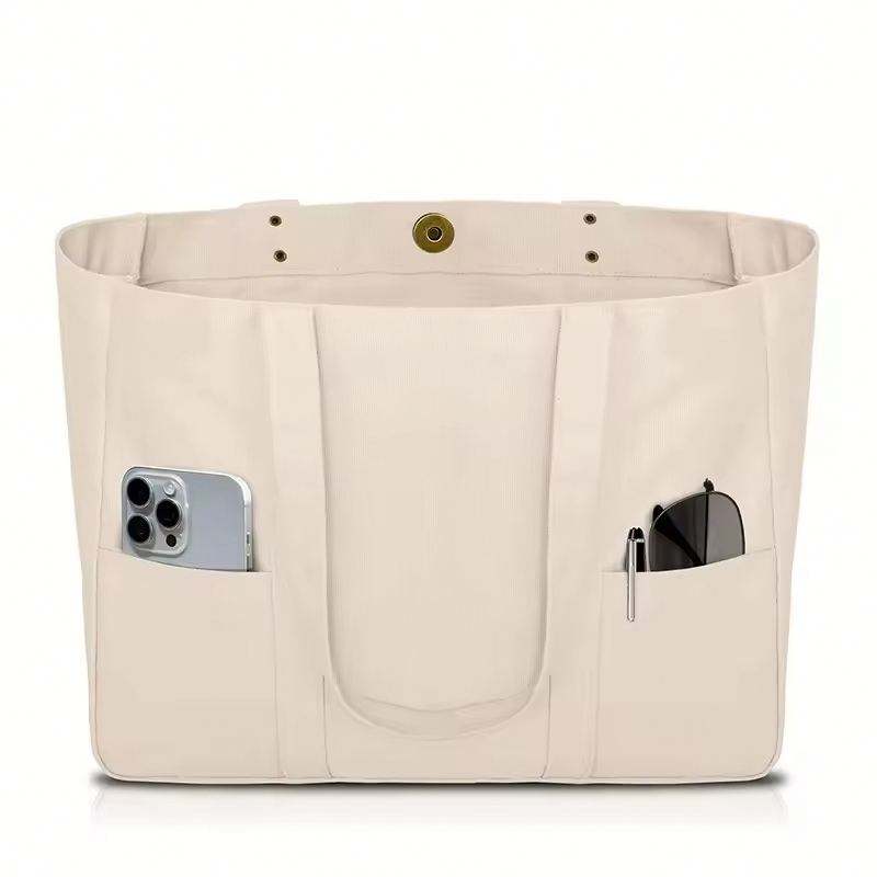 Sac fourre-tout en toile - Sac fourre-tout utilitaire avec 2 poches avant et une pochette pour ordinateur portable, sac fourre-tout robuste pour tous les jours
