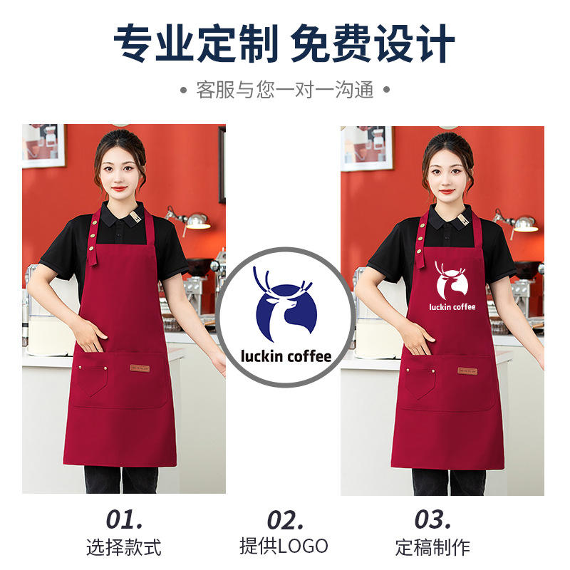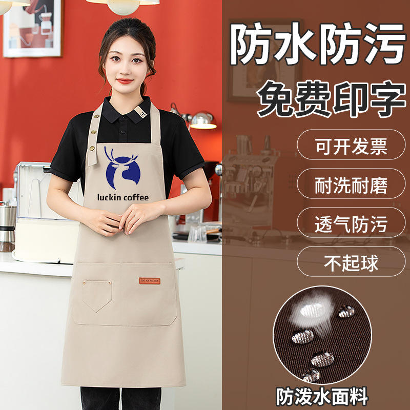 Canvas Waterproof Apron One Size Adjustable Halter Neck For Kitchen Restaurant Food Service With Logo Printing