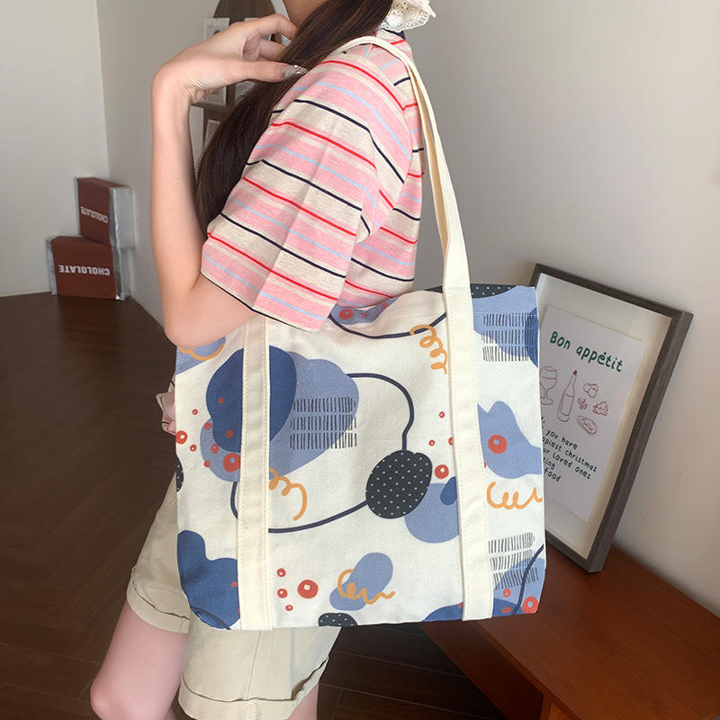 Sac à bandoulière en toile pour femme, grande capacité, imprimé abstrait, simple et élégant, à porter sous le bras, carré horizontal, pour étudiante