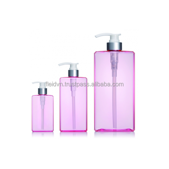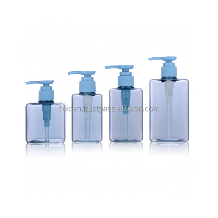 Flacon de shampoing avec pompe pulvérisatrice et bande antidérapante latérale
