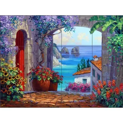 Capri MSK089 Carrelage Mural en Céramique Dosseret Art Méditerranéen par Mikki Senkarik pour Lavabos de Salle de Bain