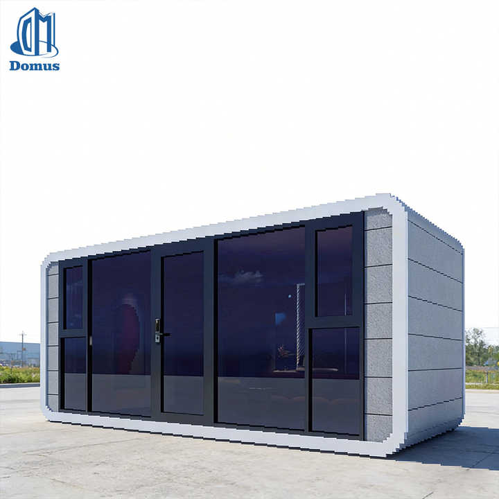 Cabine de type capsule Apple Cabin, design compact et multifonctionnel pour les centres urbains, les maisons d'hôtes et la location de petits gîtes.