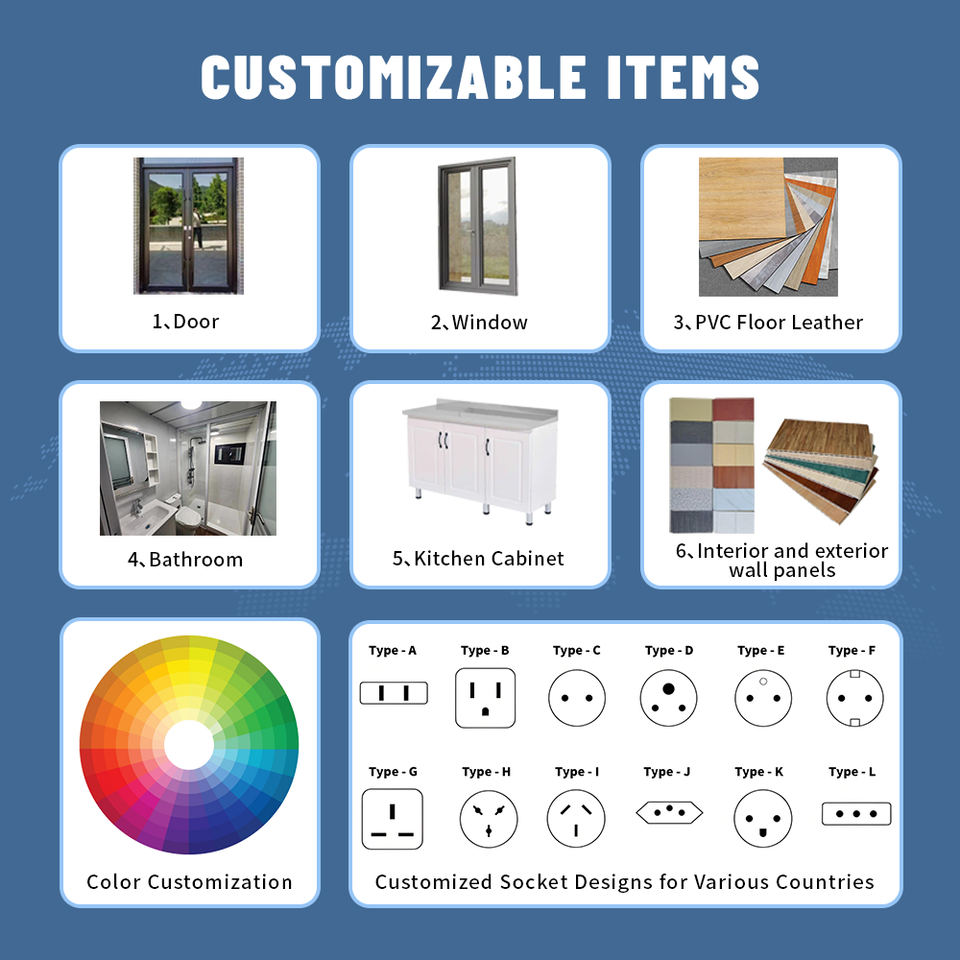 Extérieur, Bar, Boutique, Restaurant, Toilettes, Dortoir, Parking, Maison garde, Stand, Maison de conteneur, Maison vivante de conteneur, Appartement, Hôpital, École, Center commercial, Sites sportifs, Immeuble de bureaux, Villa, Hôtel, Installations de loisirsApplication