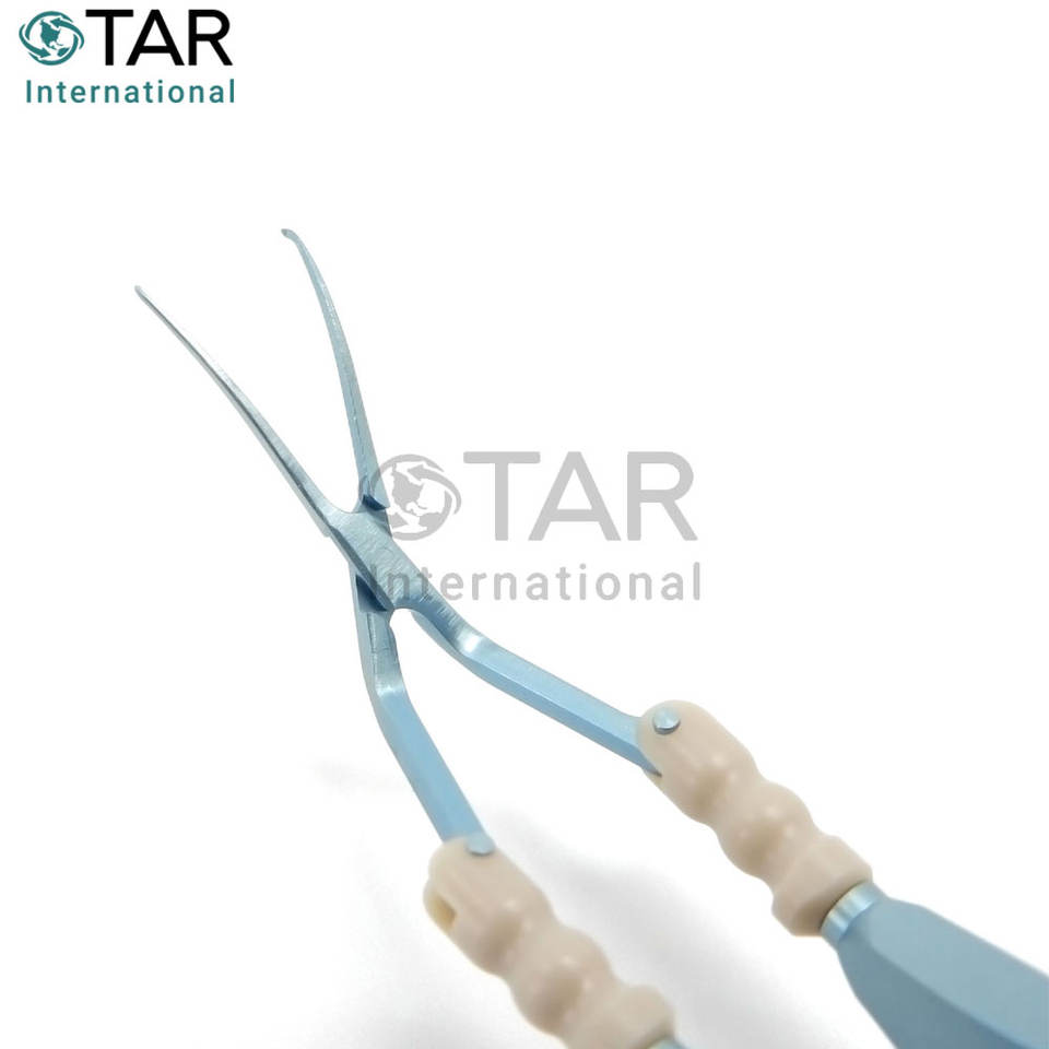 Pinces à capsulorhexis à pointe croisée, largeur 1,5 mm, pivot, boîte, pointe dentelée, entrelacement, instruments chirurgicaux ophtalmiques