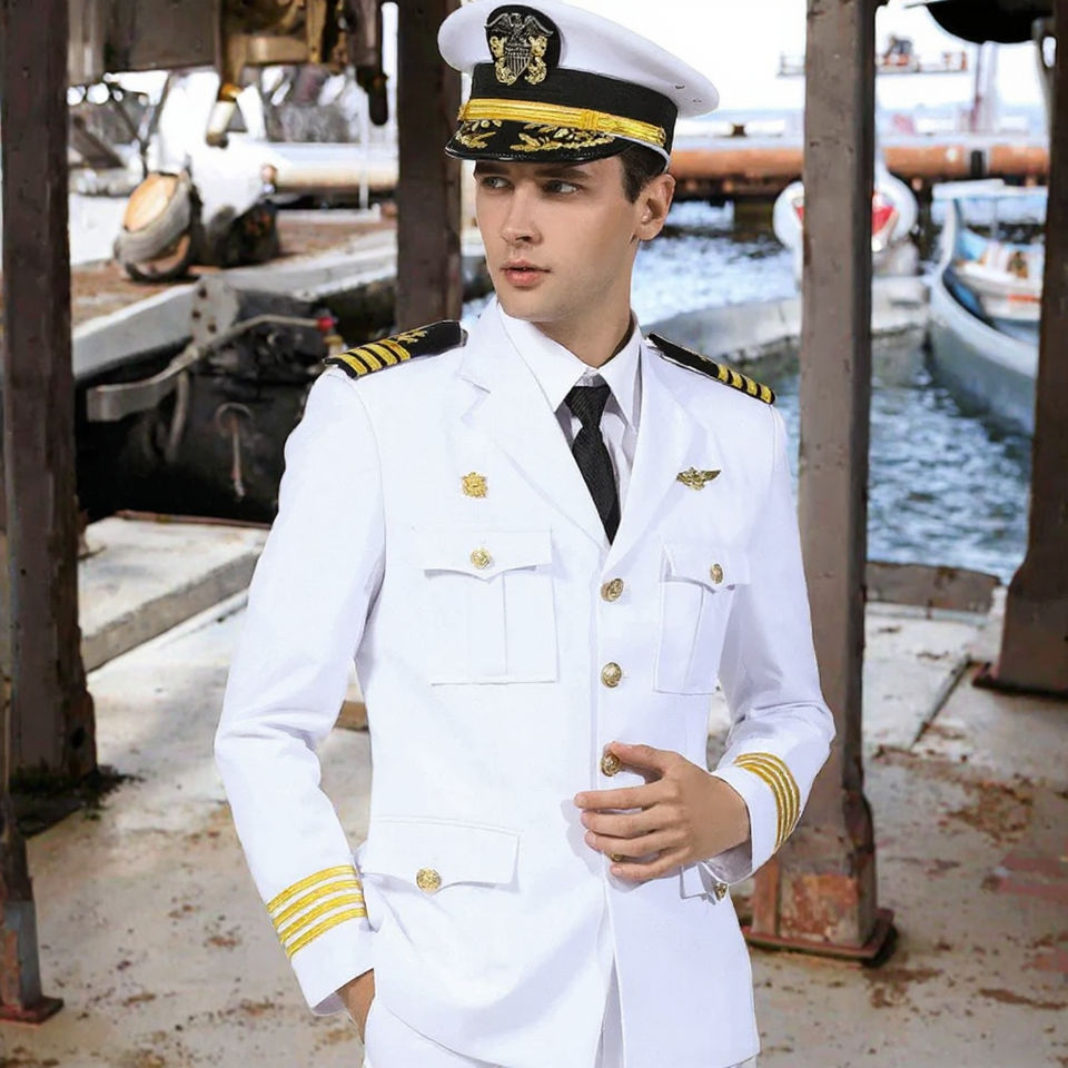 Costume professionnel de capitaine marin, uniforme de garde de sécurité, costume d'affaires, costume de pilote de film et de télévision, veste de performance de marin