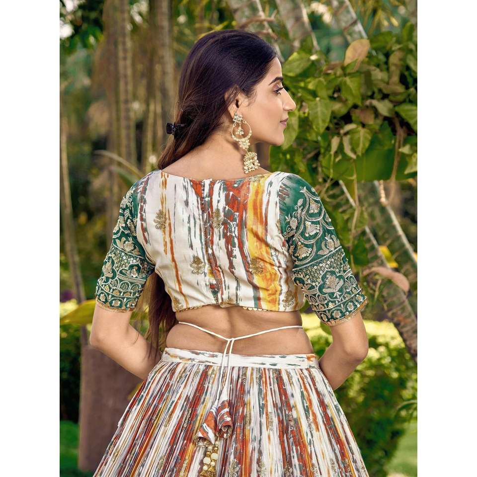 Chinon imprimé numérique blanc et vert captivant Lehenga Choli