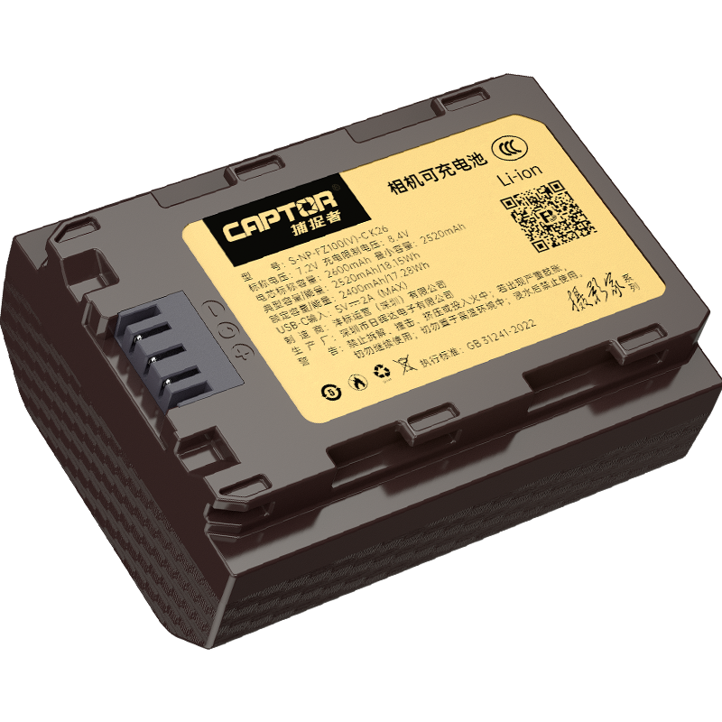Captor S-NP-FZ100(V)-C 2600mAh 7.4V Caméra Batterie pour sony A7R5 A7m4 A7m3 A7c2 A7R3 A7R4 7RM3 A7S3 A6600 A6700 FX30 Numérique