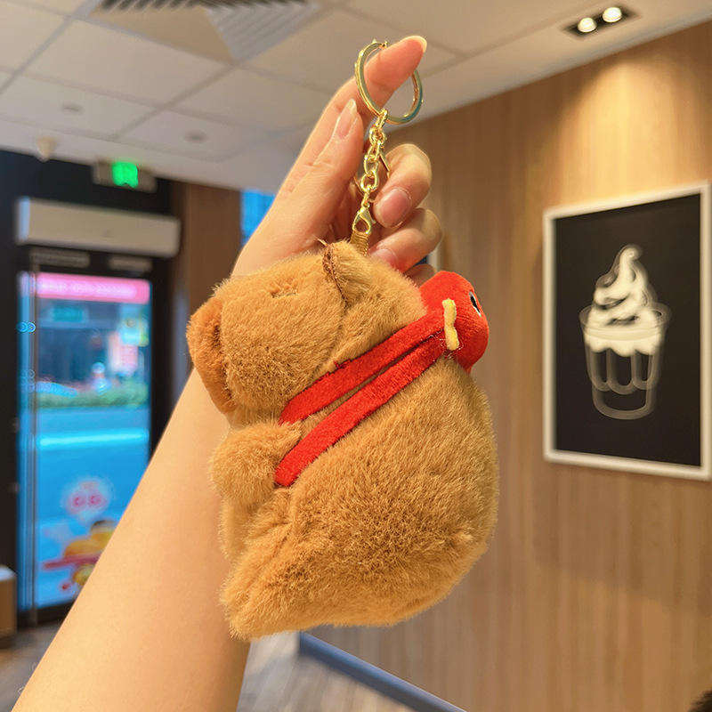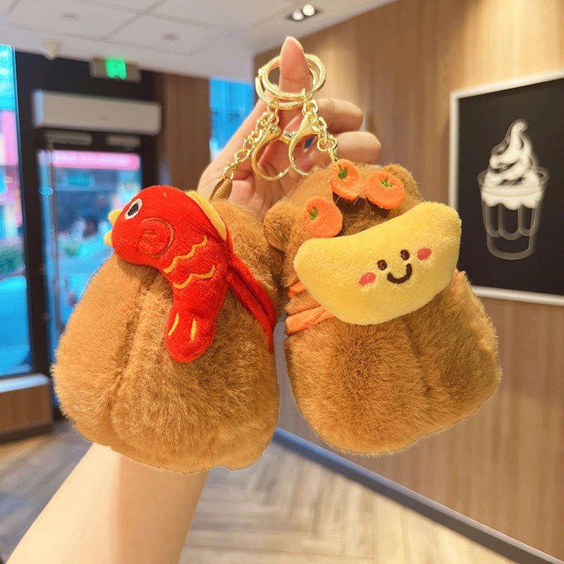 Porte-clés en peluche Capybara avec design de saucisse grillée et poisson Koi, breloque de sac en peluche Kawaii pour cadeau et décoration