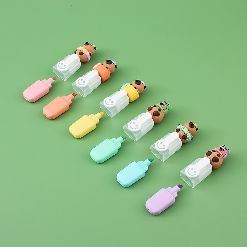 Ensemble de mini-surligneurs sur le thème de la capybara, 6 couleurs pastel, avec un adorable embout 3D, surligneurs de poche portables pour l'école et le bureau