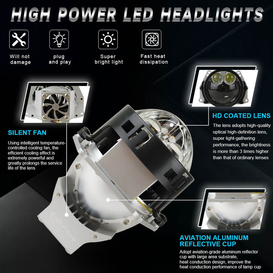 Phares LED de voiture 3 pouces, lentille de projecteur Bi LED, 10000K, 150W, étanche IP68, 12V, 10000 Lumens, accessoires universels pour voiture