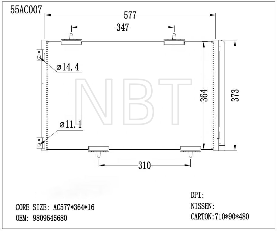 Condenseur de climatisation pour PEUGEOT Ely/C3-XR/301/2008 1.6 OEM 9809645680 Auto Parts