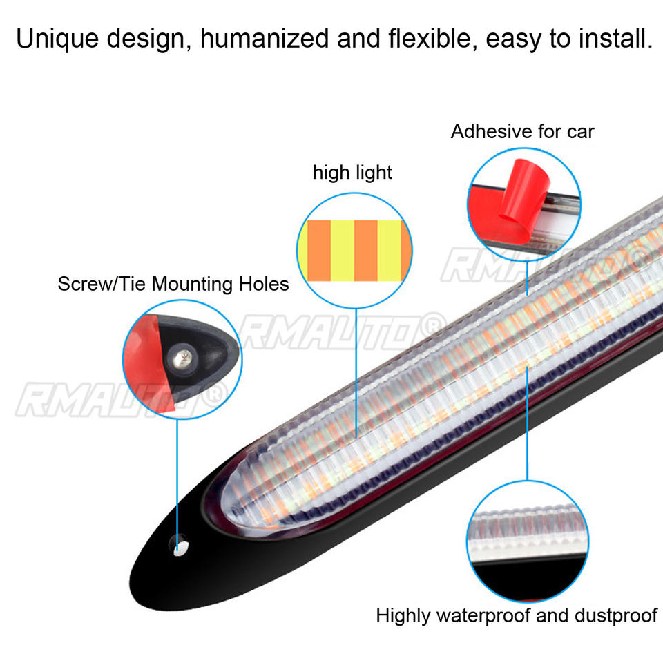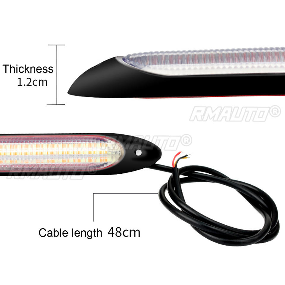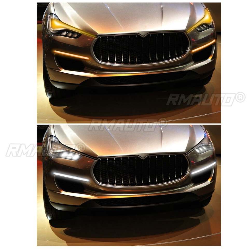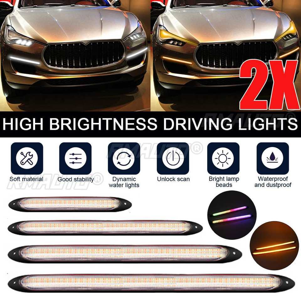 Accessoires de voiture, bande LED flexible 12V, clignotant jaune et blanc, éclairage diurne à défilement automatique pour phares, 2 pièces