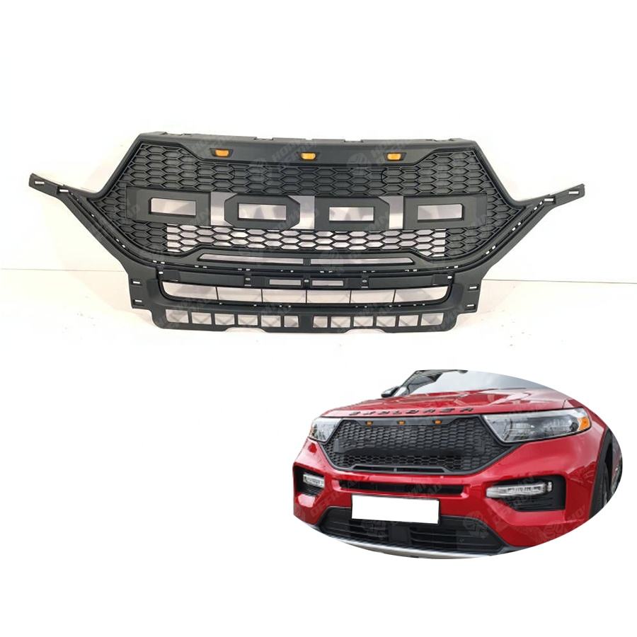 Calandre de remplacement avant en fibre de carbone, 4x4, calandre avec éclairage ambre, accessoire de voiture pour Explorer 2020