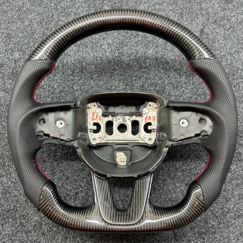 Accessoires de voiture adaptés à la Dodge Challenger Charger, cuir véritable perforé, fibre de carbone forgée, volant