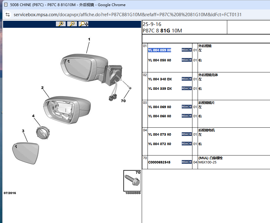 Accessoire de voiture, rétroviseur extérieur, assemblage OE YL00405980 YL00405880 pour Peugeot 3008 4008 5008