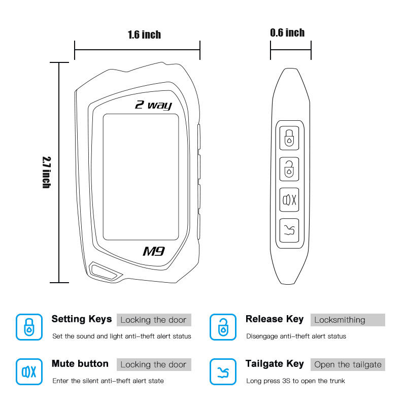 Nom du produit:Alarmes de voiture bidirectionnelles automatiques avec verrouillage automatique et anti-déraillement