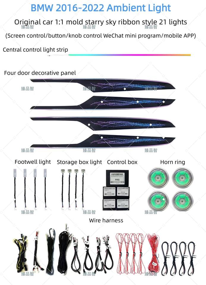 Éclairage d'ambiance intérieur de voiture, lumière LED style ruban ciel étoilé, compatible avec BMW X1 X2 2016-2022 F48 F49, lumière symphonique