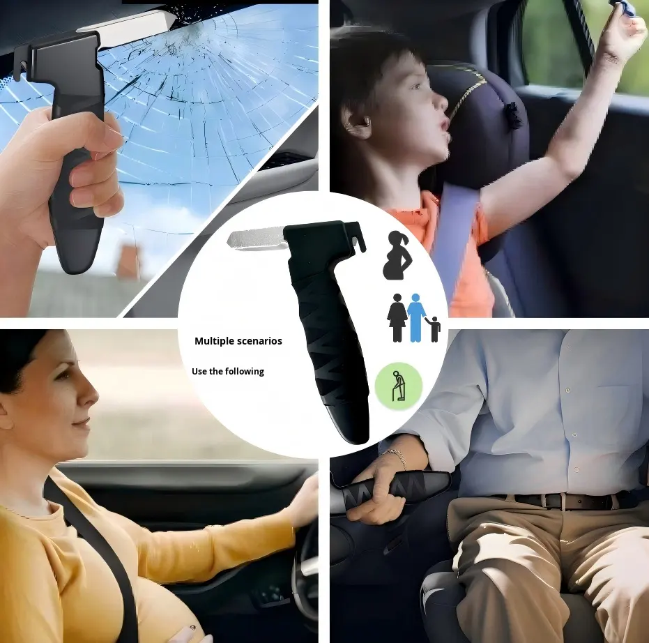 Accoudoir de voiture, article populaire transfrontalier, coloré, portable, outil de voiture 3 en 1, marteau de sécurité multifonctionnel pour personnes âgées