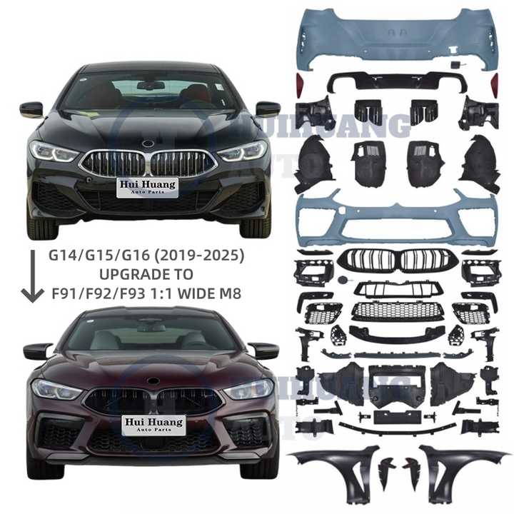 Kit de carrosserie pour BMW 8-Series G14/G15/G16 2019 + jusqu'à F91/F92/F93 M8 Competition 2025 Model avec pare-chocs avant et arrière.