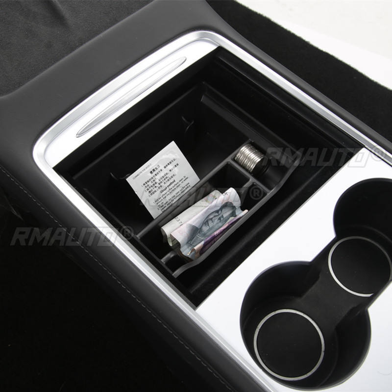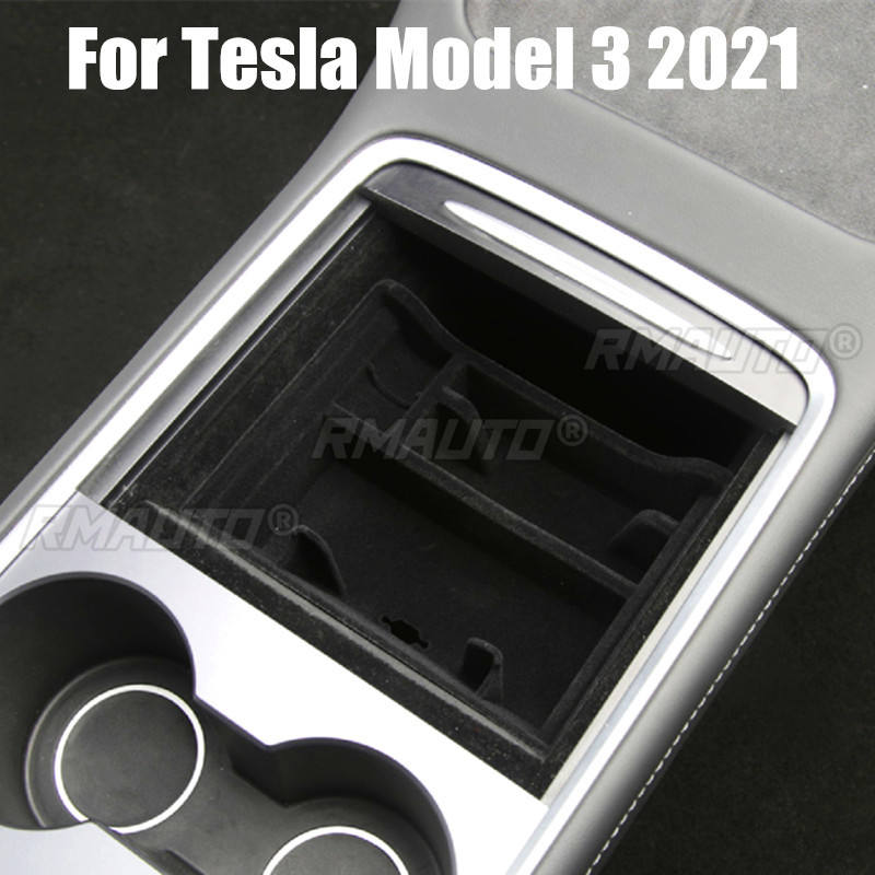Boîte de rangement pour accoudoir central de voiture, pour Tesla Model 3 Y 2021, organisateur floqué pour console centrale, conteneurs, accessoires de voiture