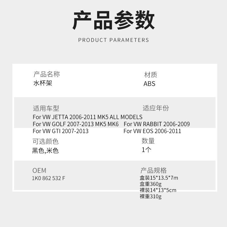 Porte-gobelet de voiture pour siège arrière, ABS noir beige, compatible avec Volkswagen Jetta MK5 Sagitar Golf 5 Air Vent