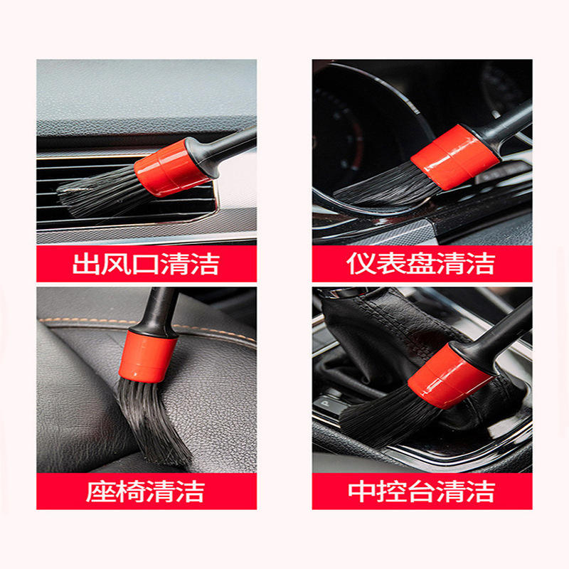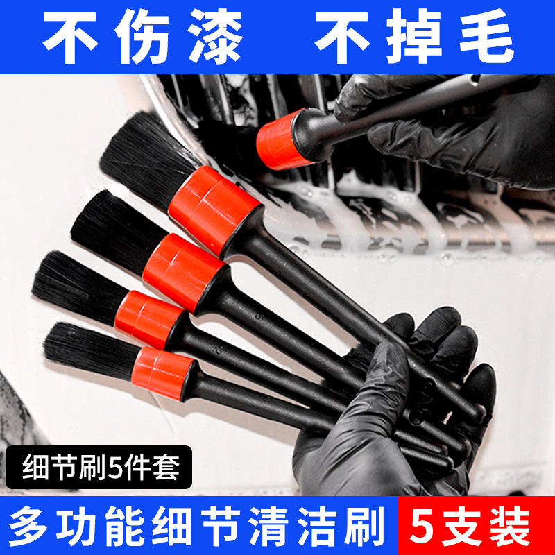 Ensemble de brosses de nettoyage pour voiture, 5 pièces, noir et rouge, en PP, pour le lavage de voiture, le nettoyage des grilles, des jantes et des aérations