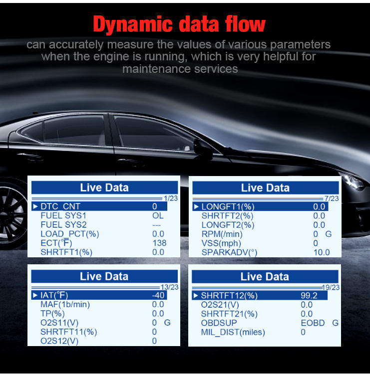 OBD2 fonction 1:Lire et code de défaut clair, flux de données en direct, VIN