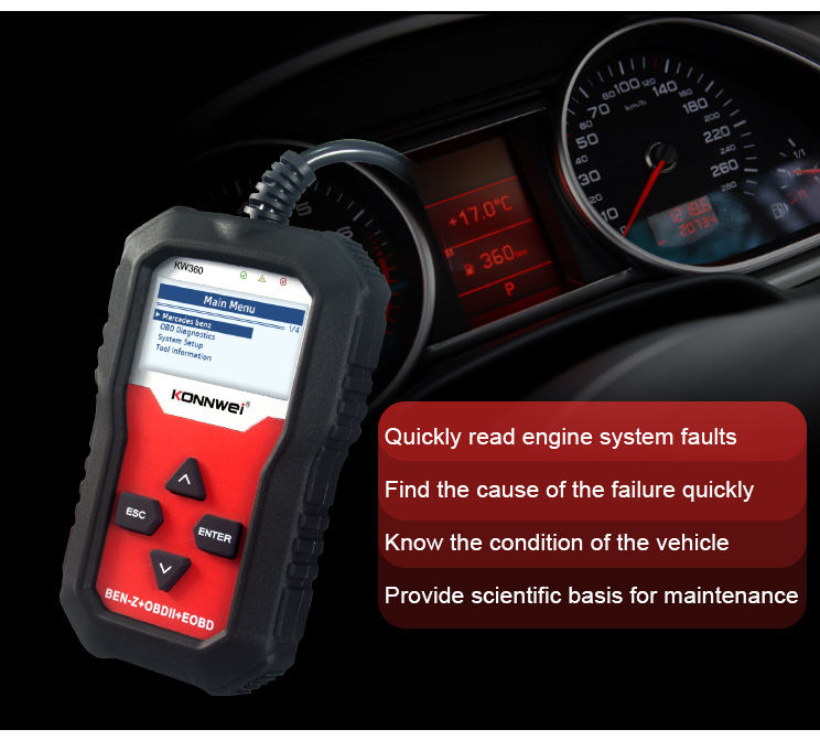 Combinaison:Scanner d'OBDII, Scanner d'EOBD, Plein outil de diagnostic de système pour le benz de Mercedes, Moniteur EVAP, Test du capteur O2, Lire et effacer les codes