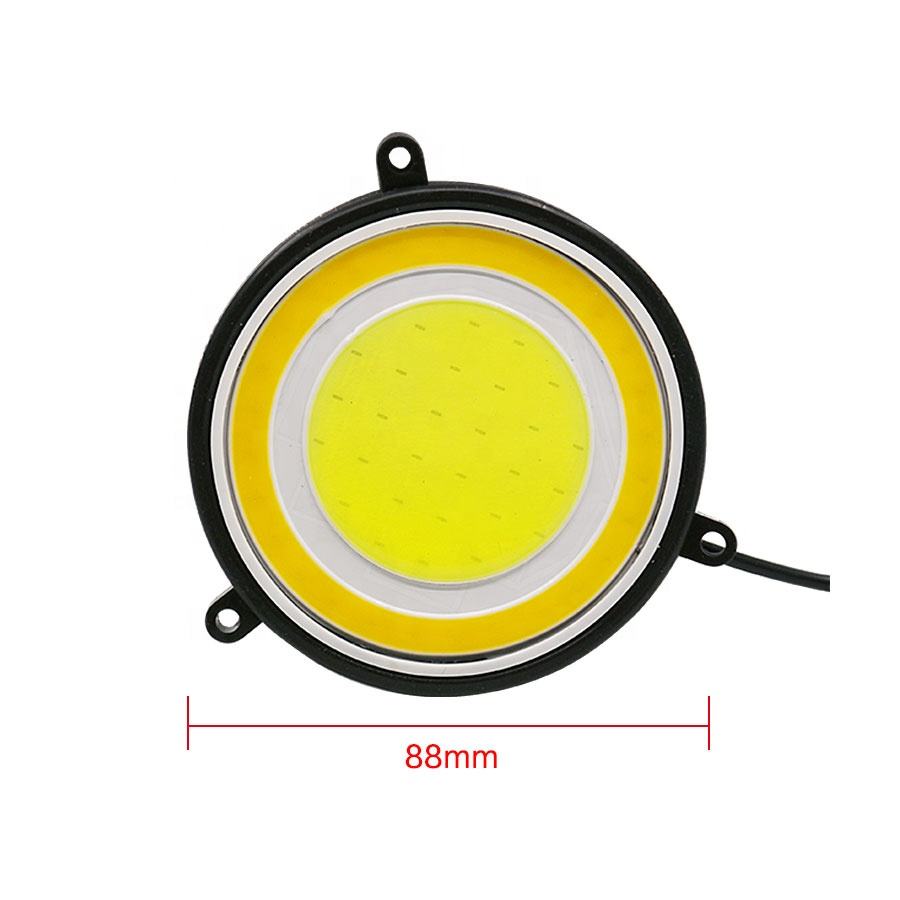Feux de jour double couleur DC 12V COB rond LED blanc jaune lampe de conduite clignotant lampe Auto Led feux de signalisation DRL
