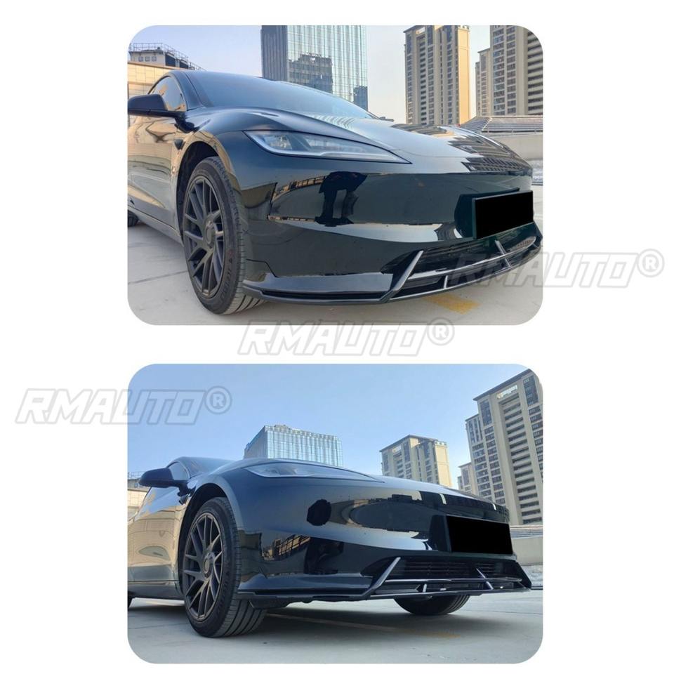 Diffuseur de pare-chocs avant noir brillant pour Tesla Model 3 2023+ - Pièce de modification et protection de pare-chocs