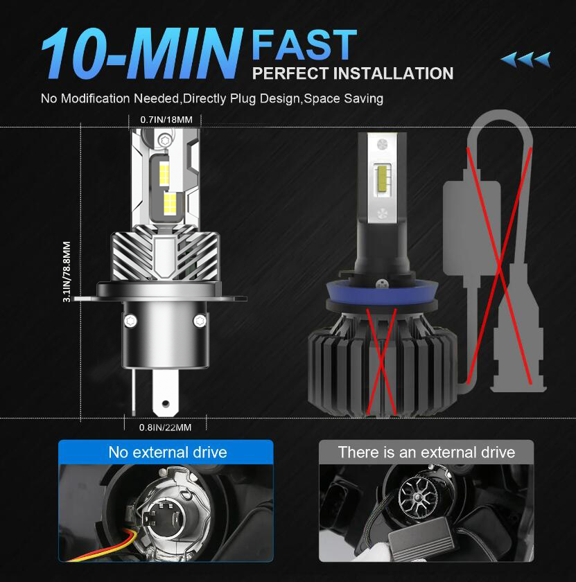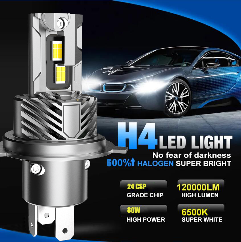 Phare de voiture H4 LED 12V Canbus gratuit 6000K Blanc Puces CSP H4 LED Lumière Mini taille Plug and Play Ampoule LED H4