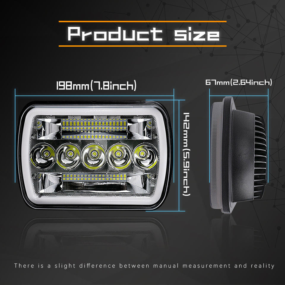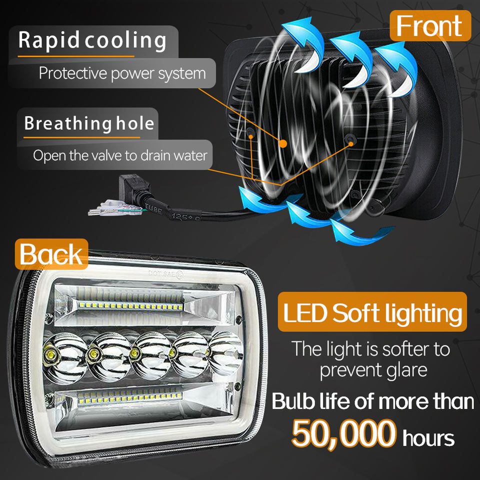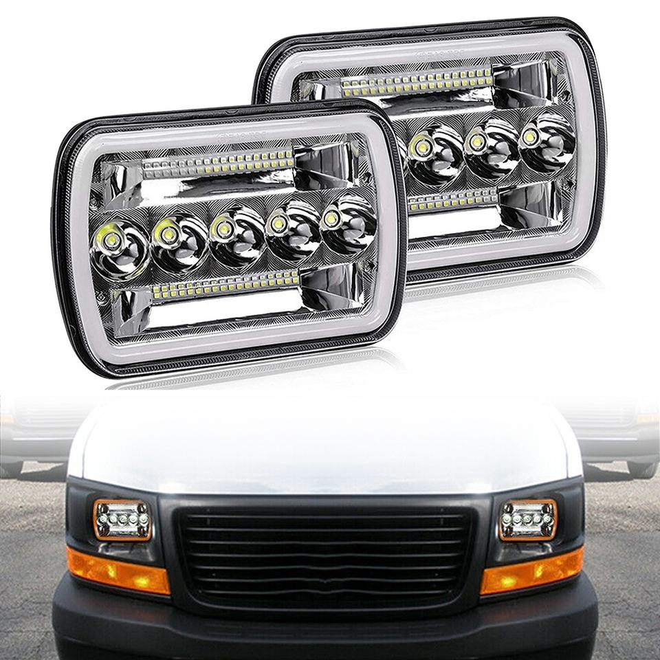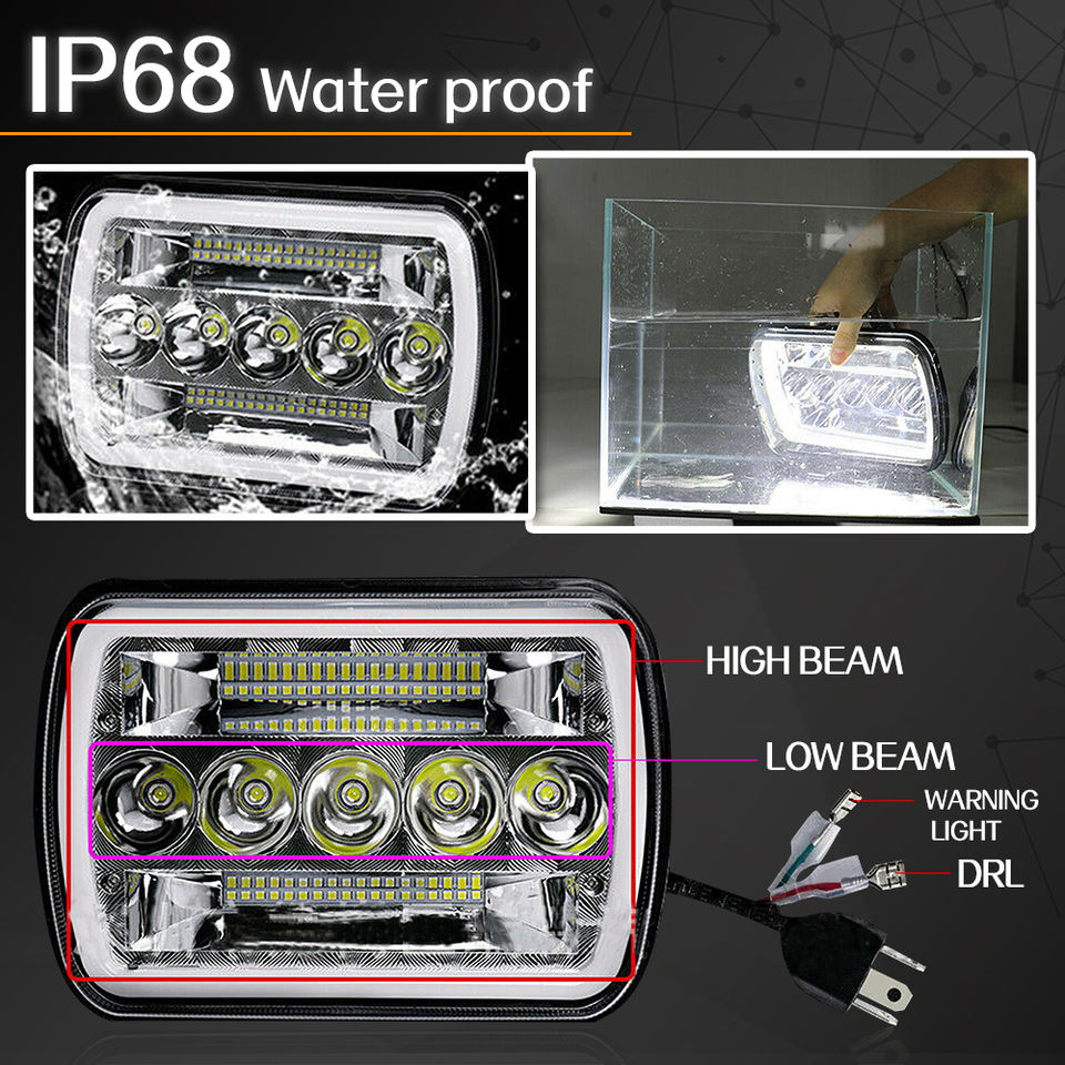 Phares de voiture 7x6/5x7 pouces LED, faisceau Hi/Lo, phares rectangulaires, halo blanc, DRL, clignotant ambre, H4 12V 120W 6000 lumens