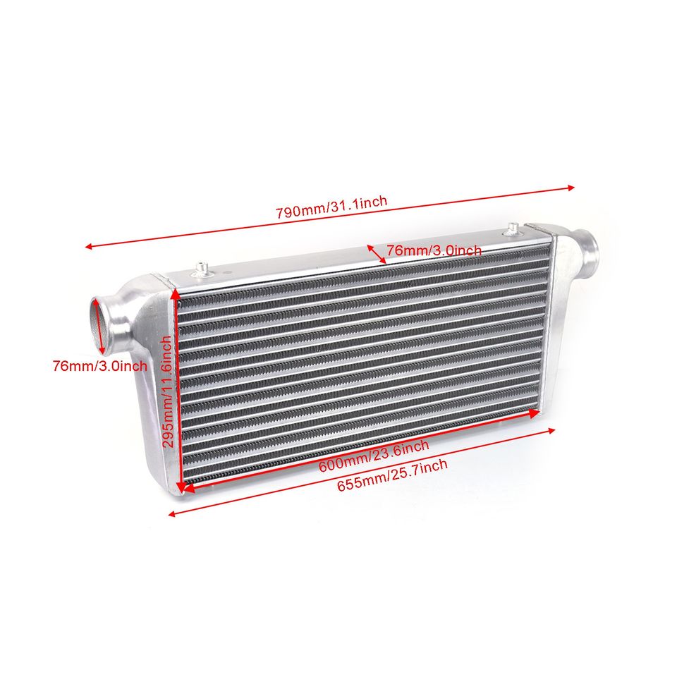 Radiateur Intercooler de Voiture 600x300x76mm en Aluminium à Barres et Plaques, Entrée d'Air Froid, Sortie 76mm, Entrée Turbo 3 Pouces, Universel