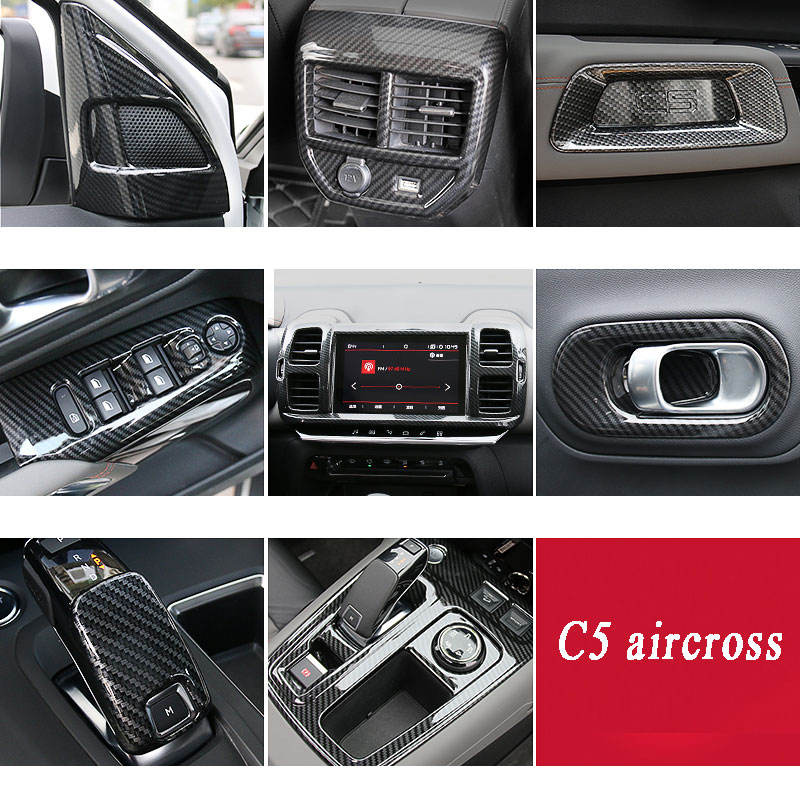 Accessoires intérieurs de voiture pour Citroen c5 aircross 2018 2019 2020 2021 2022 couvercle de panneau de vitesse accoudoir tableau de bord en fibre de carbone