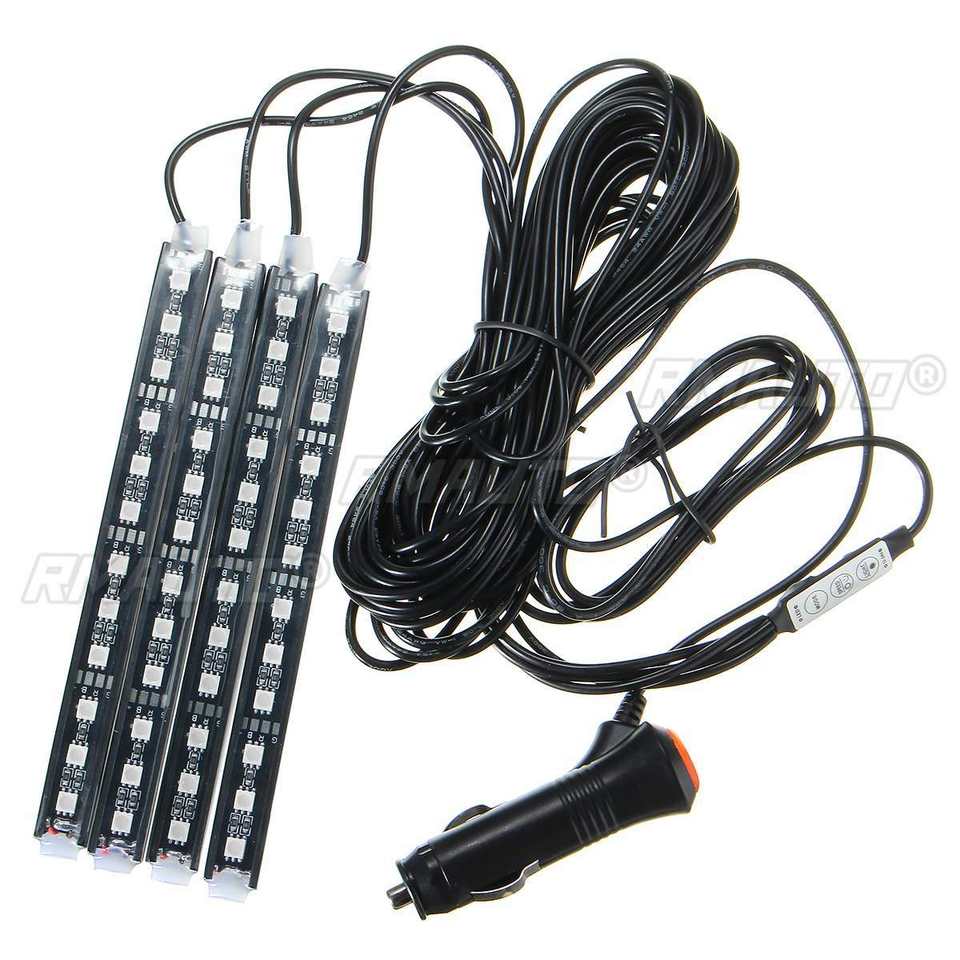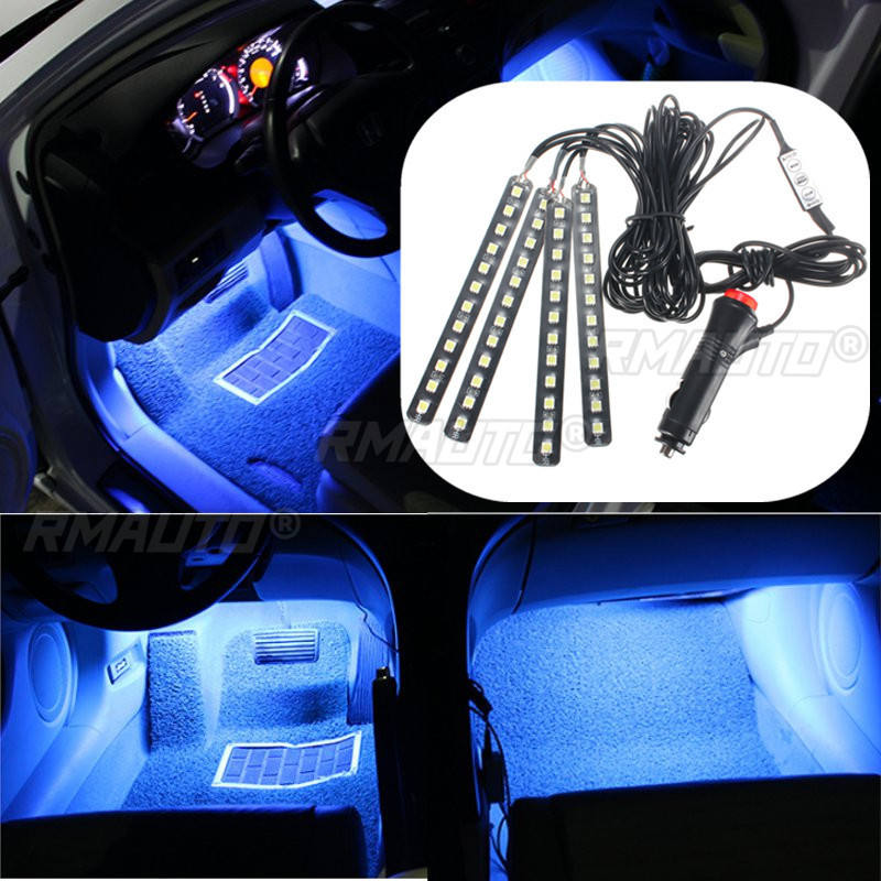 Barre lumineuse LED pour l'intérieur de la voiture, 4 en 1, rétroéclairage, lumière d'ambiance, lumière pour les pieds, allume-cigare, lampe décorative d'ambiance, bleu, bleu glace