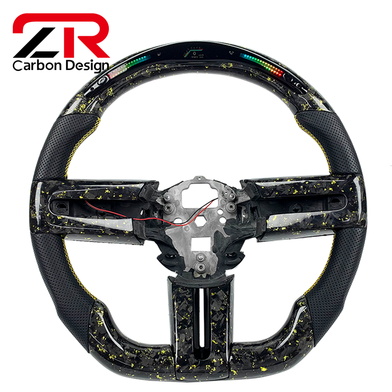 Volant sport personnalisé en cuir véritable et fibre de carbone forgée avec LED RPM pour Ford Mustang 2010 2012 2013 2014 GT