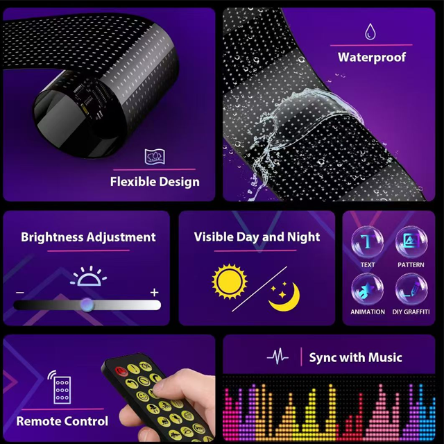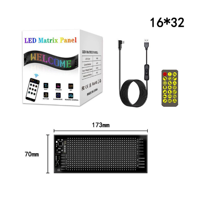 Panneau de Pixels LED Matrice pour Voiture, Écran USB Défilant 5V RGB, Enseignes LED Contrôlées par Télécommande et Application, Modèle Flexible, Défilement Graffiti