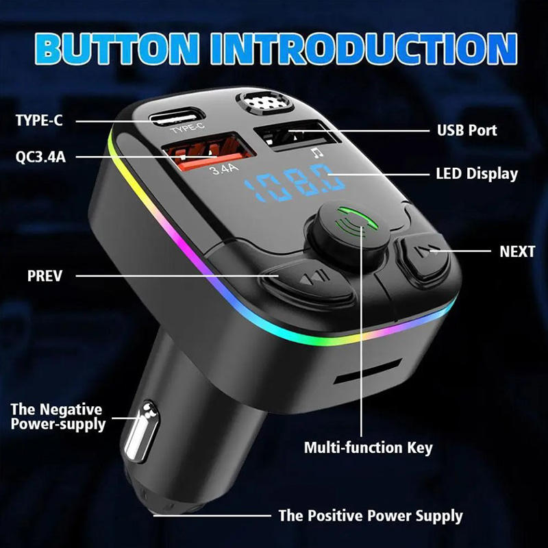 Lecteur MP3 de voiture Type-C Chargeur rapide Mains libres PD QC3.0 5.0 Transmetteur FM automatique Type-C Double USB