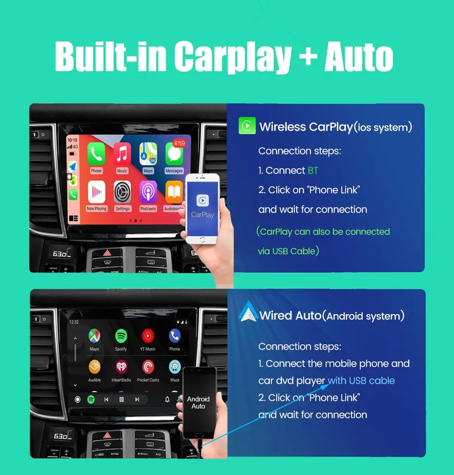 GPS, Stéréo, Amplificateur, DSP, CarPlay, Lien de miroir, Android auto, Écran partagé, Volant de voiture de Contrôle, Haut-parleur intégréFonction
