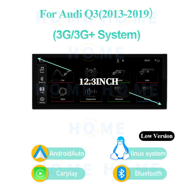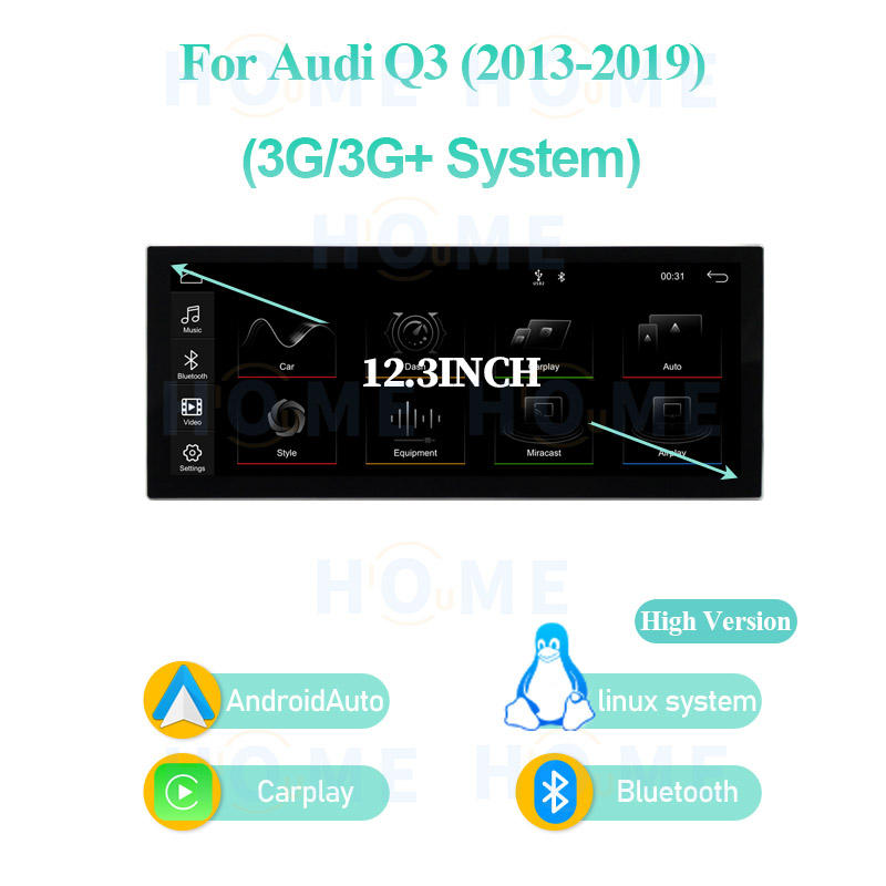 Écran multimédia de voiture, console centrale, Carplay sans fil pour Audi Q3 2013-2018, navigation GPS, écran ultra-fin de 12,3 pouces