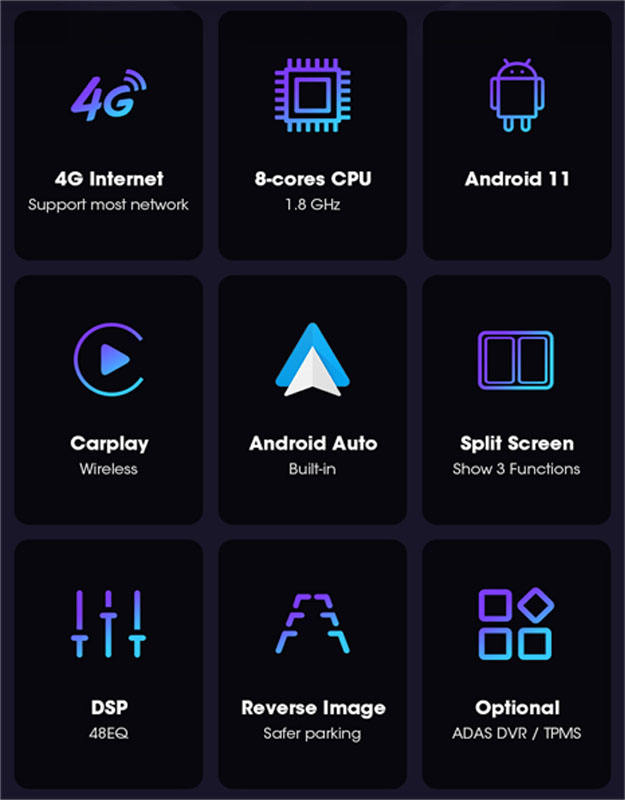 Combinaison:Bluetooth-activé, Gps intégré, Lecteurs MP3 / MP4, Radio Tuner, Écran tactile, Dvr, Transmetteur fm, Caméra de recul, Aide à l'inversion
