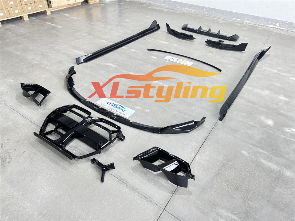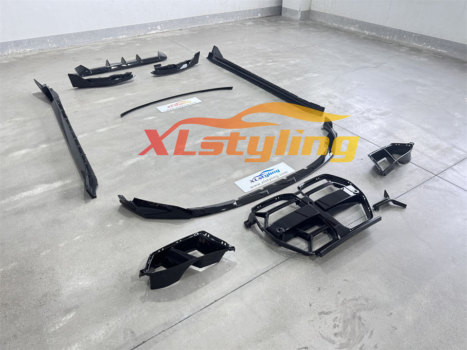 Kit carrosserie aérodynamique CSL pour BMW G80 G82, comprenant un séparateur de pare-chocs avant en plastique MP M Performance, un diffuseur arrière et des évents de calandre.