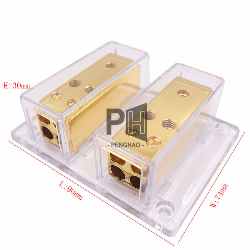 Bloc de distribution d'énergie pour voiture Répartiteur de câble de terre d'alimentation 8 voies plaqué or 4 8 AWG Hub de câble de terre pour voiture personnalisé