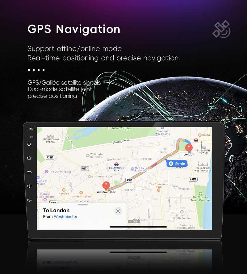GPS, Stéréo, Télécommande, Amplificateur, Lien de miroir, Microphone intégré, Écran partagé, Gestionnaire de fichiers, Volant de voiture de ContrôleFonction
