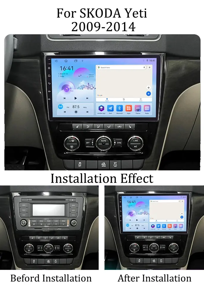 Autoradio Android pour SKODA Yeti 2009-2014 Multimedia Carplay Video Player 2din Stereo Autoaudio Headunit 9 Inch Navigation GPS