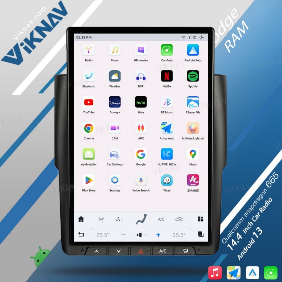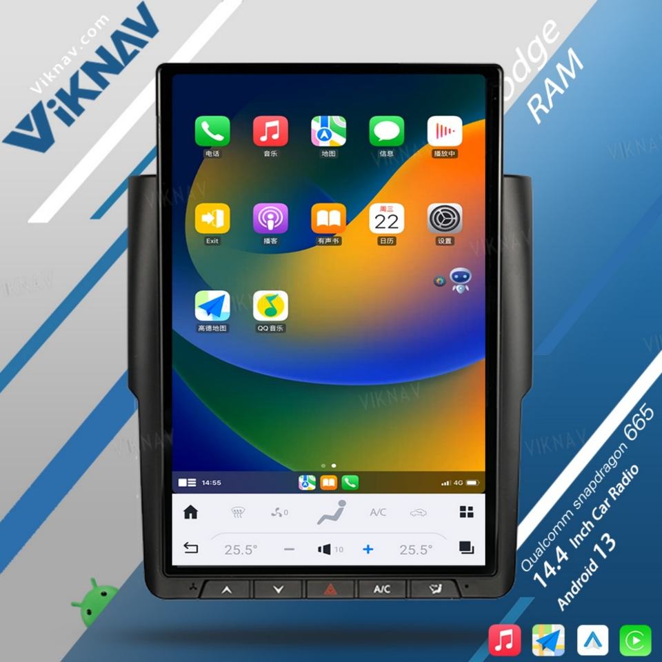 Autoradio pour Dodge RAM 2013-2018, enregistreur de bande 14,4 pouces, lecteur multimédia GPS, navigation, 128 Go, Android Auto, Carplay vertical