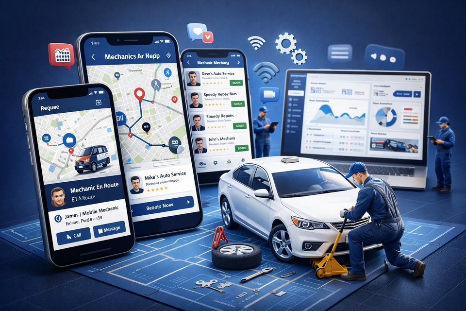 Développement d'une application mobile de réparation automobile à la demande avec réservation en temps réel, suivi des mécaniciens et tableau de bord de gestion des services