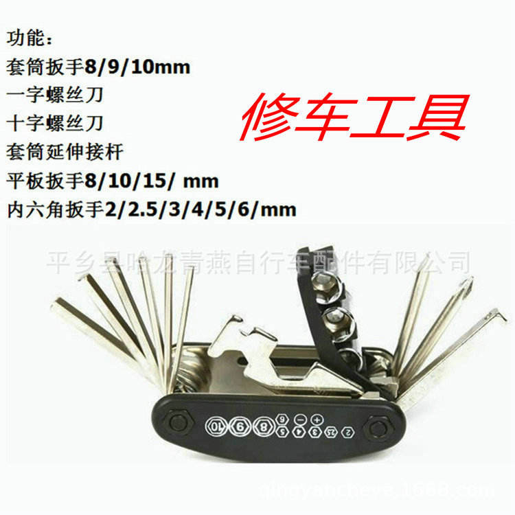 Clé de réparation automobile, kit d'outils pour vélo, clé hexagonale pliable 16 fonctions, outil multifonction en métal pour l'entretien des vélos