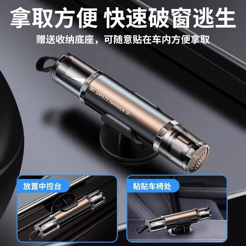Marteau de sécurité automobile, brise-vitre d'urgence, alliage d'aluminium noir, 82g, outil de sauvetage multifonctionnel