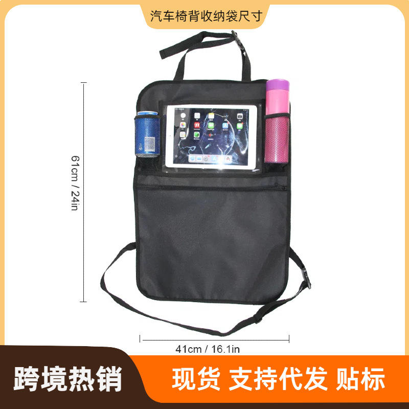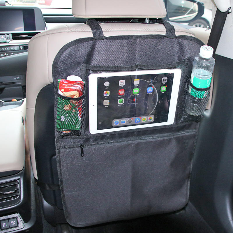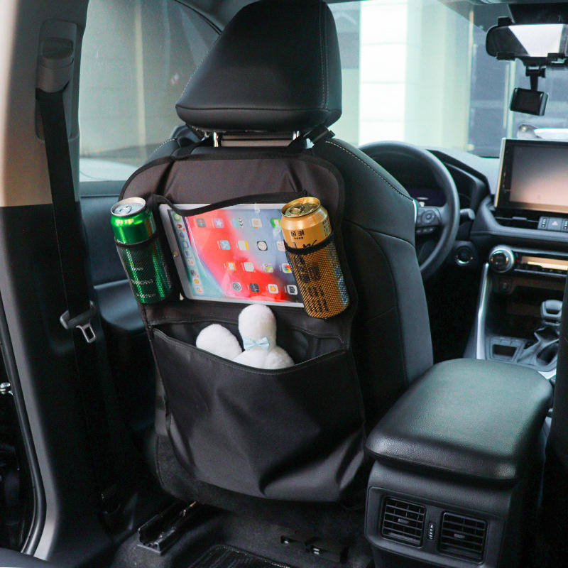 Sac de rangement pour dossier de siège de voiture, 4 poches, tissu noir 600D avec support pour tablette, pour l'organisation des sièges arrière des enfants